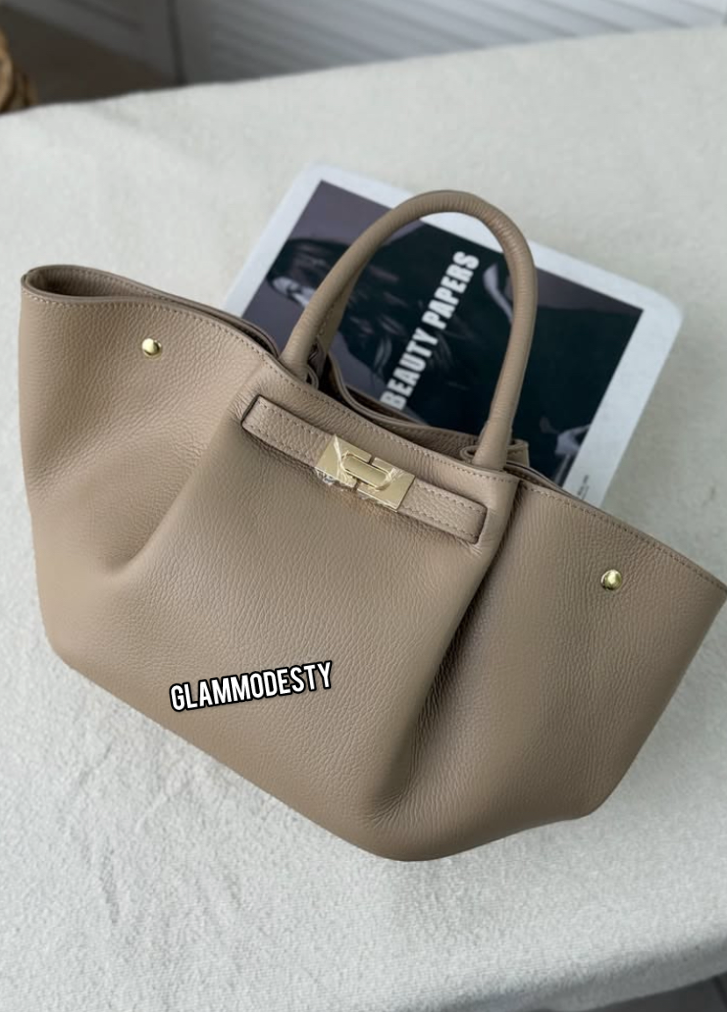 Doté de poignées solides et confortables, il peut se porter à la main ou au bras avec aisance. Ses finitions métalliques apportent une touche de modernité tout en restant sobres et élégantes.
